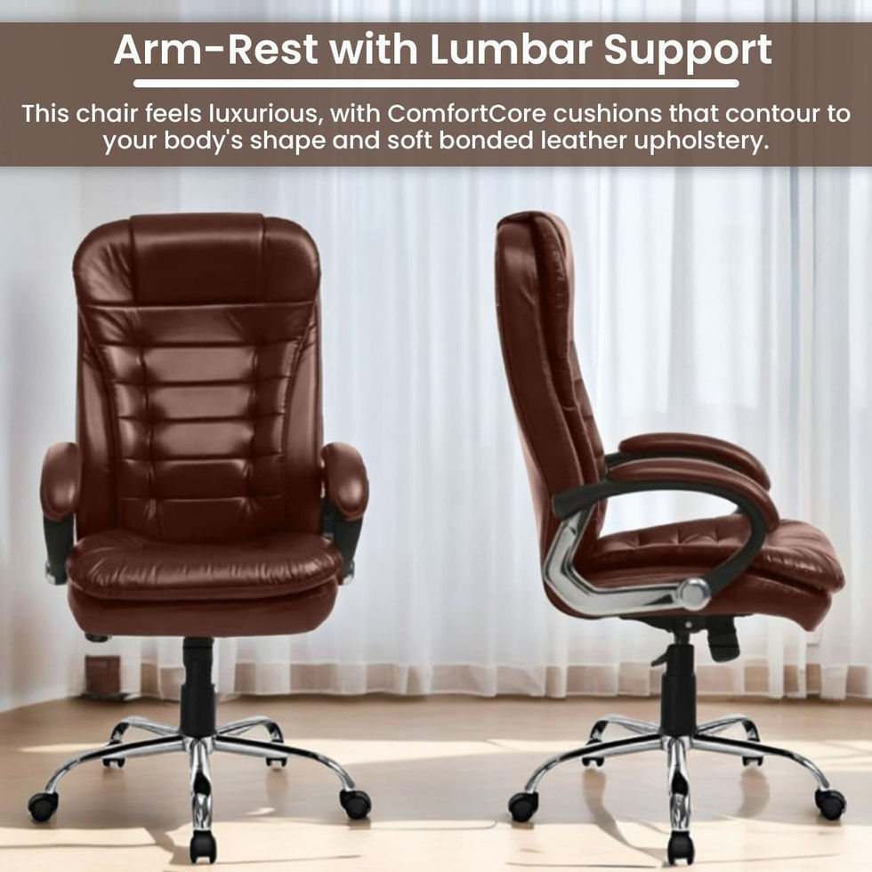 Finished in an elegant Capri Brownie shade, this office arm chair blends seamlessly with modern and classic interiors. The 360-degree mobility makes it suitable not only as a study or office chair but also as a gaming and revolving chair, offering a complete solution for work, study, and leisure.